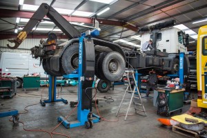 Notre équipe composée de 10 mécaniciens dispose d’une fosse d’entretien et de jeux de colonnes de levage de 45 tonnes.